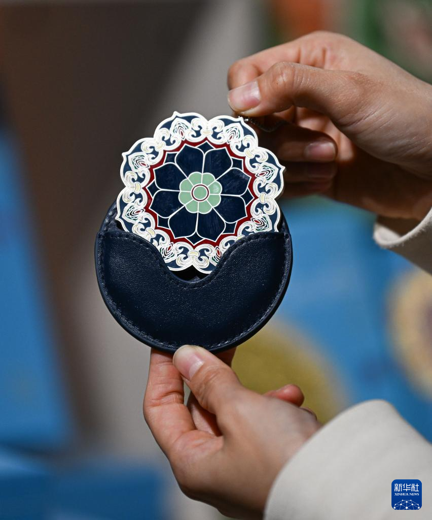 12月29日,工作人員在位于??诘纳胶\幬膭摽臻g展示敦煌繁花化妝鏡。