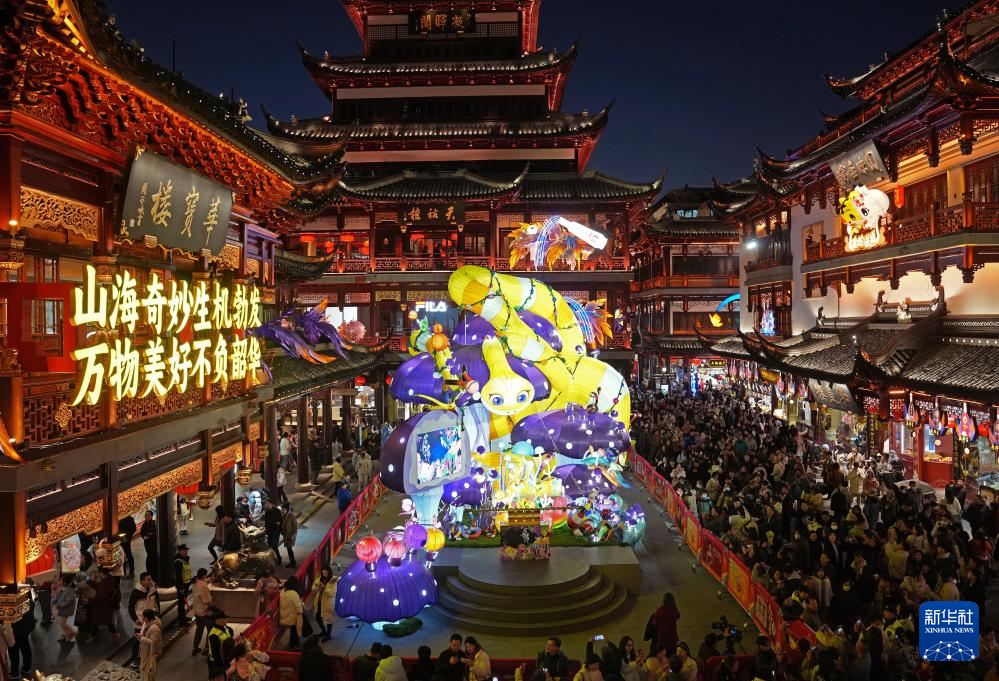 當日,2025上海豫園民俗藝術燈會正式亮燈。今年燈會的主題延續“山海奇豫記”的故事,開啟叢林篇的講述。作為國家級非物質文化遺產代表性項目,走過30年的豫園燈會已成為上海標志性新春文化活動和城市文化名片。