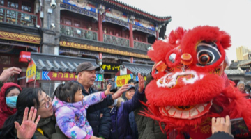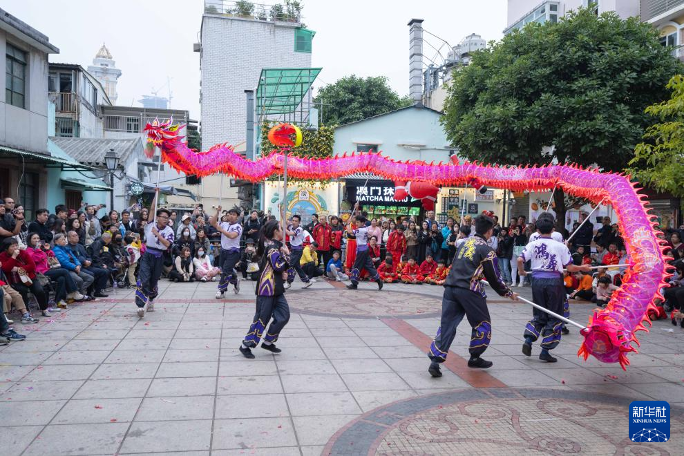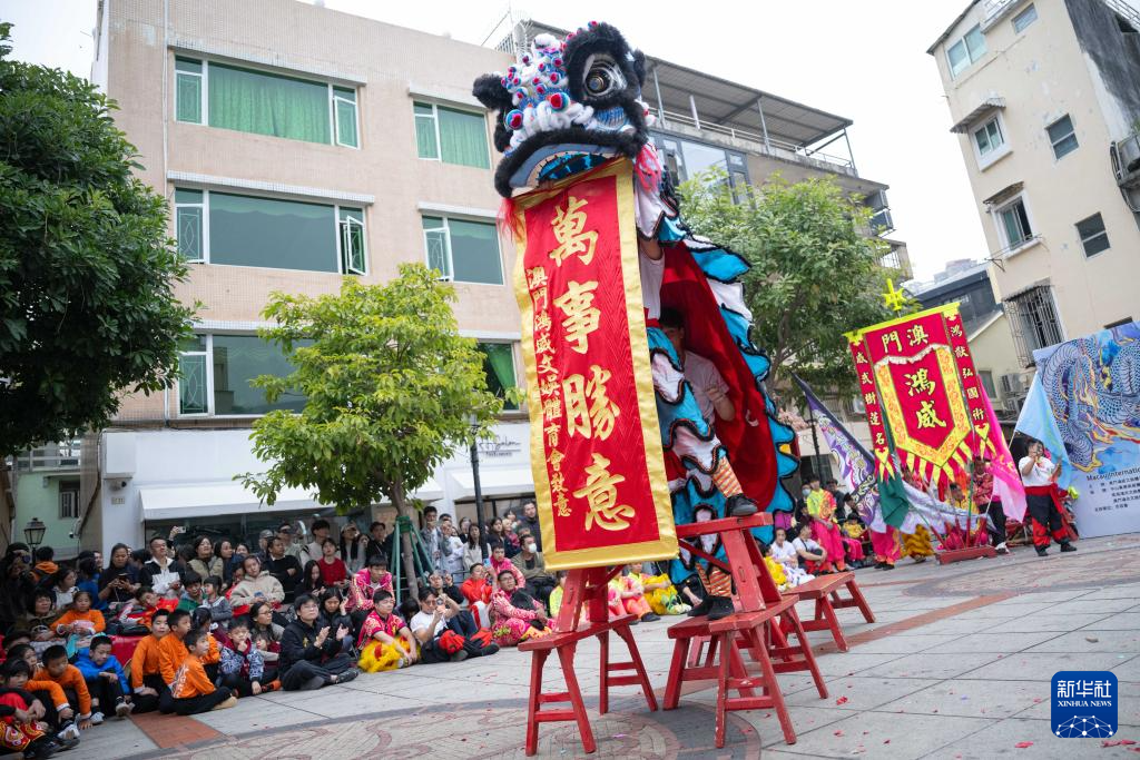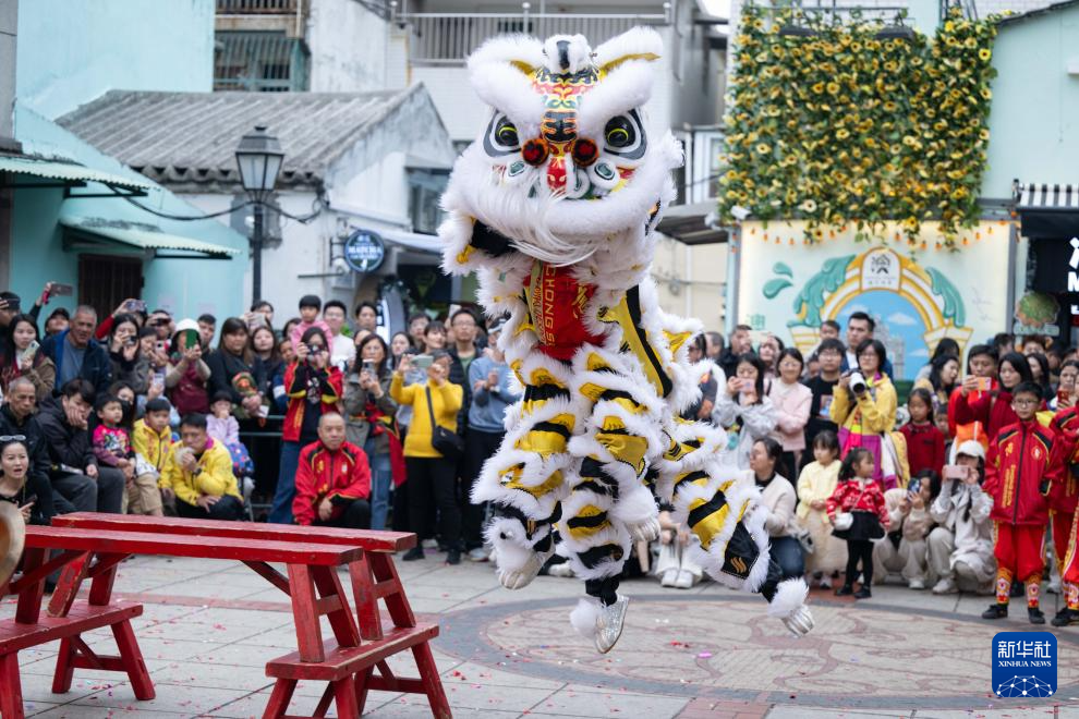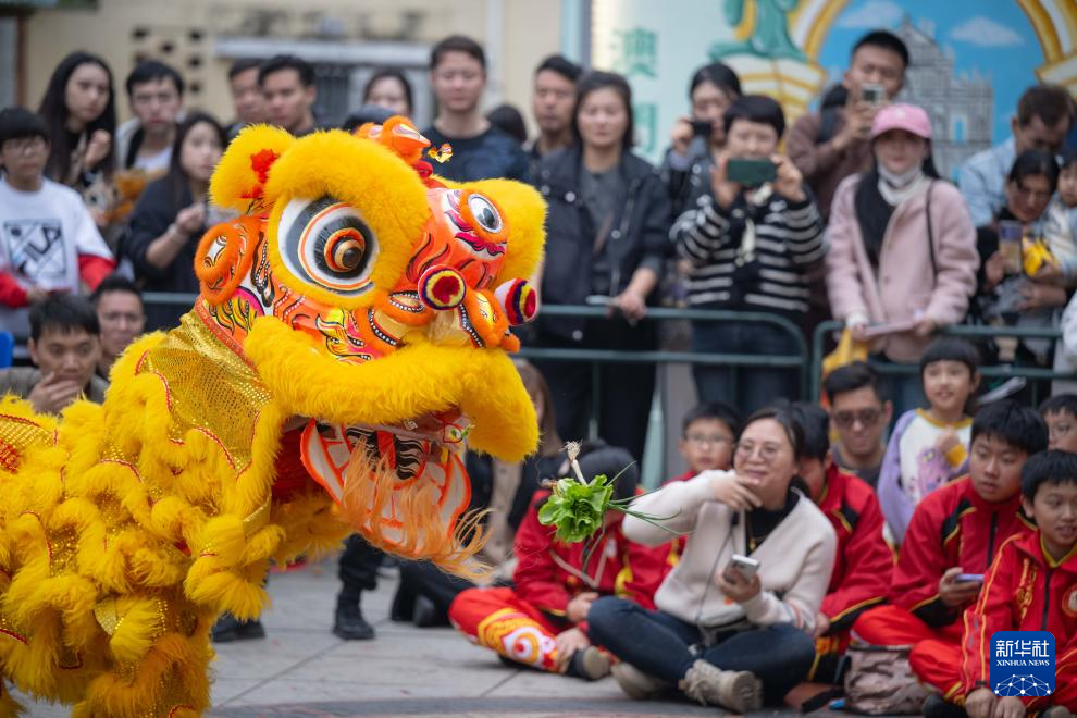 當日,2025世界龍獅日澳門站活動舉行?;顒釉萍鬄硡^龍獅隊伍,吸引不少游客駐足觀看。