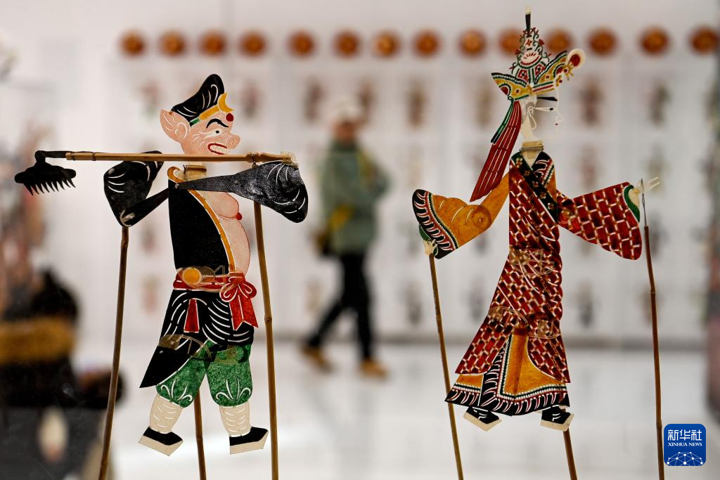 1月8日,市民在西安大唐芙蓉園內的非遺年貨集市上選購汪氏皮影文創產品。