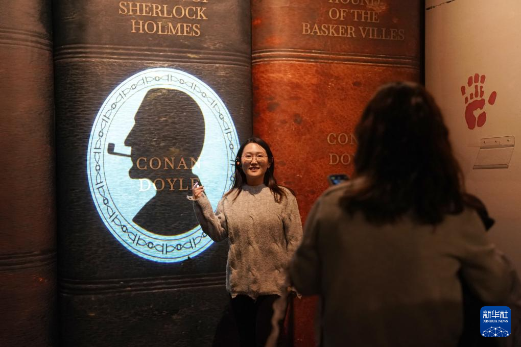 1月1日,在位于西安的陜西省圖書館高新館區內,觀眾在文學主題展覽中參觀拍照。