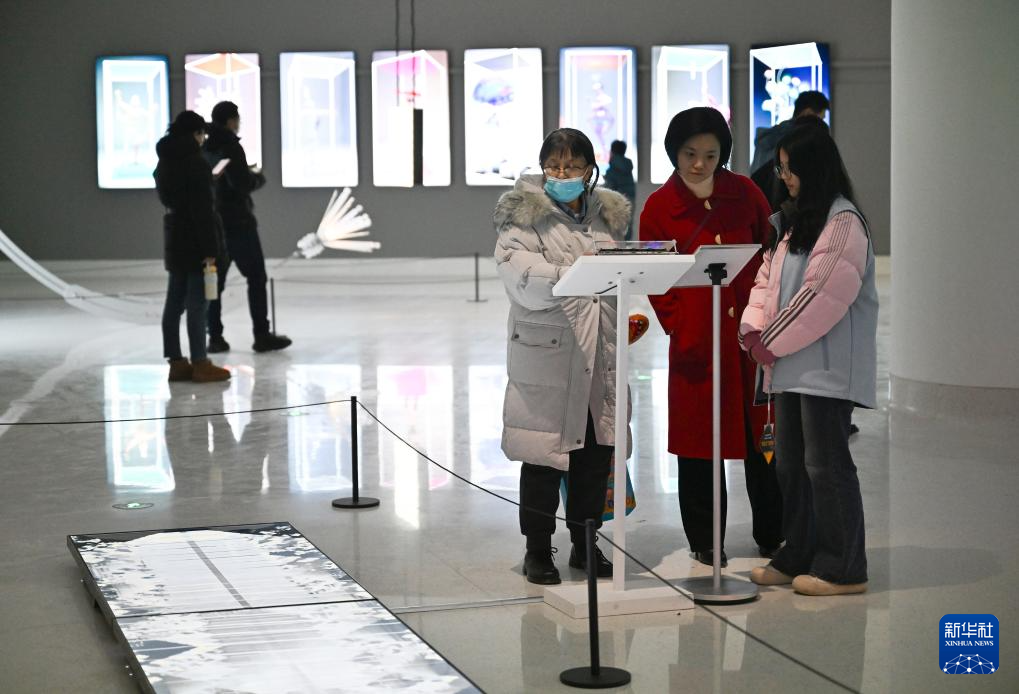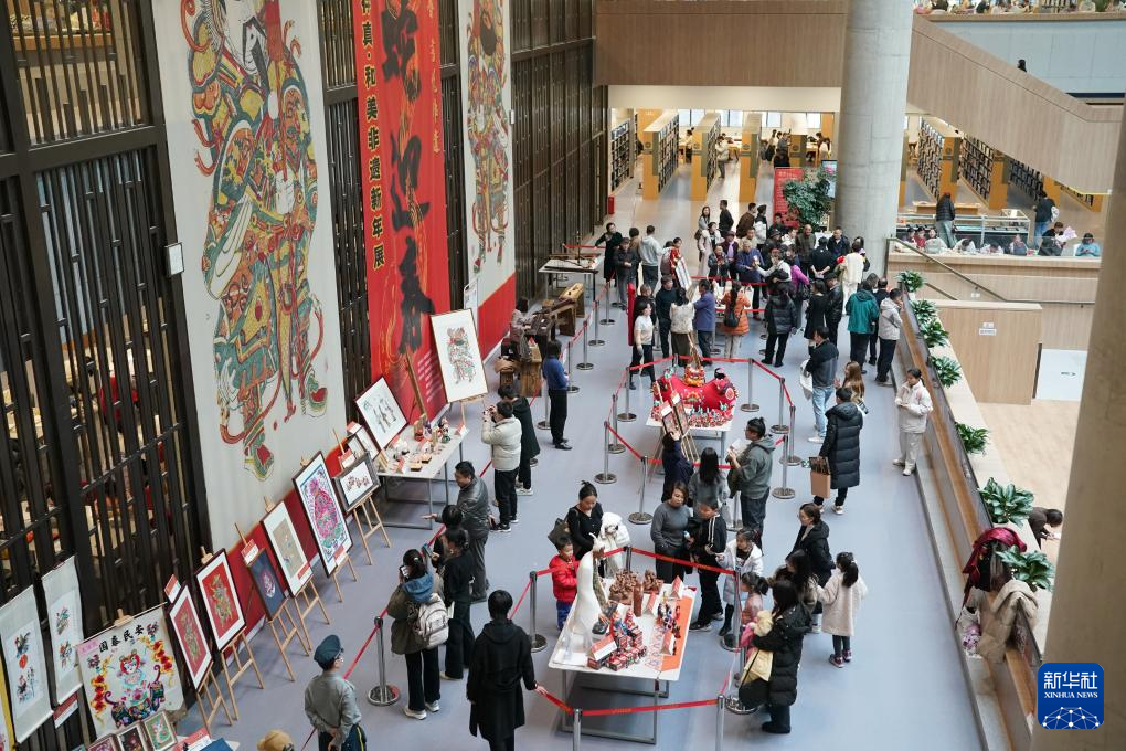 1月1日,觀眾在位于西安的陜西省圖書館高新館區內參觀一場非遺文化展覽。
