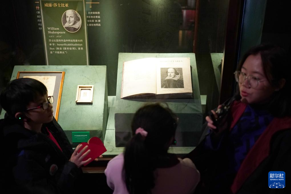 1月1日,在位于西安的陜西省圖書館高新館區內,講解員帶領小朋友參觀文學主題展覽。