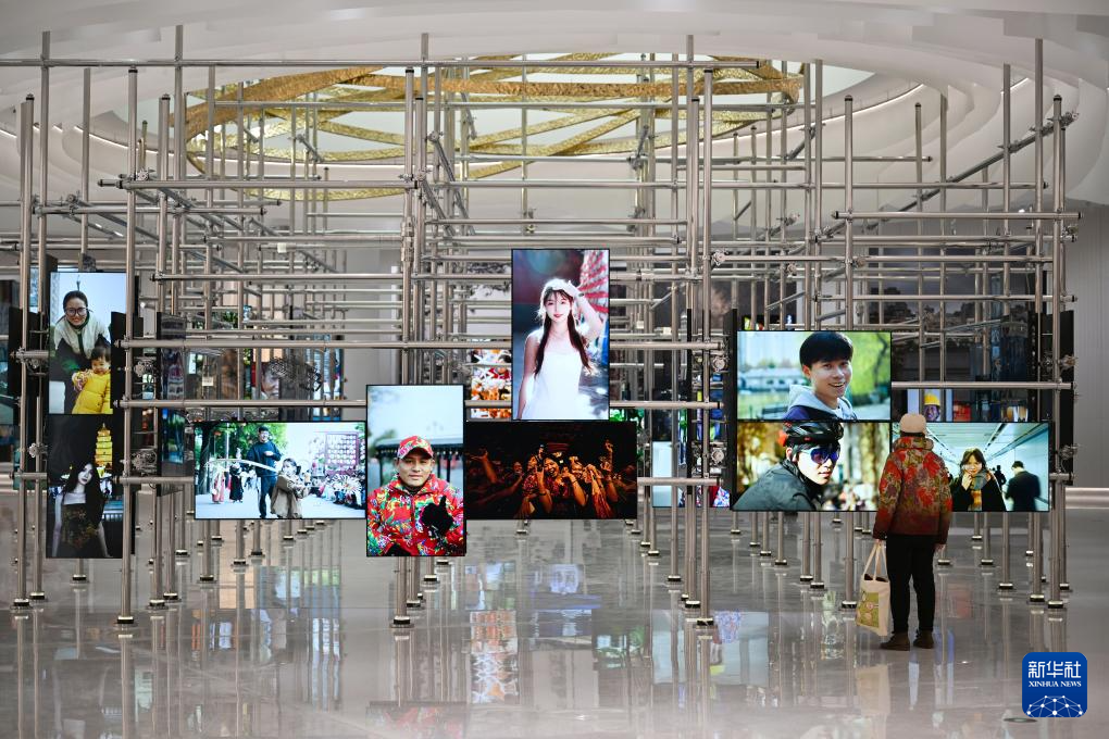 1月1日,游客在位于西安市浐灞國際港的長安云“一帶一路”城市展示體驗中心參觀攝影展。
