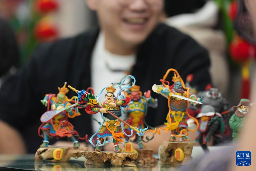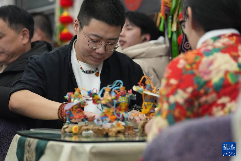 1月11日,康氏面塑傳承人康建在K7041次列車上展示面塑。