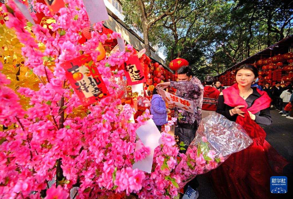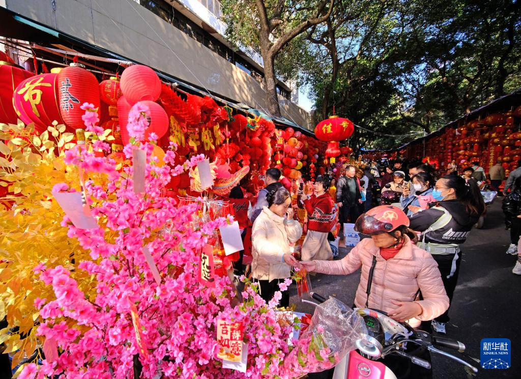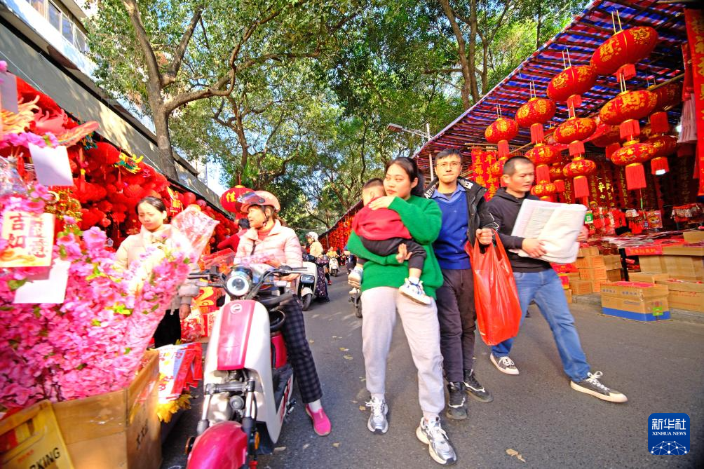 隨著春節的臨近,廣西南寧市交易場附近的新春飾品攤位生意日益紅火,眾多市民前來采購春聯、窗花等新春飾品。