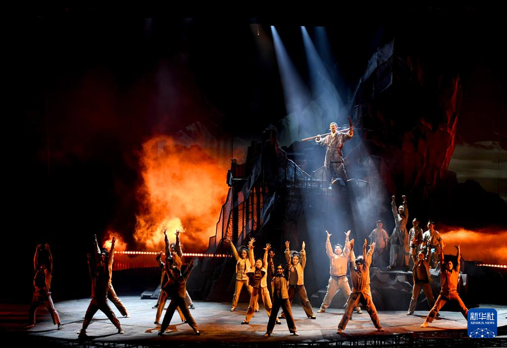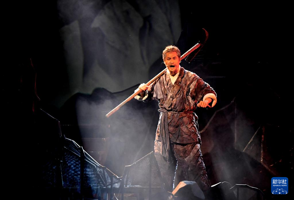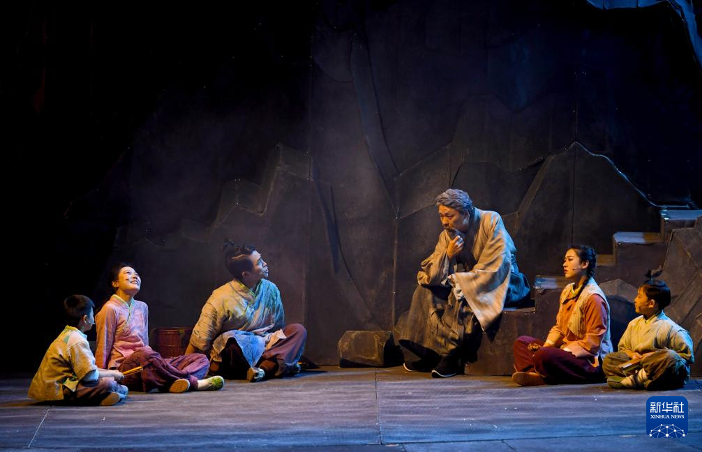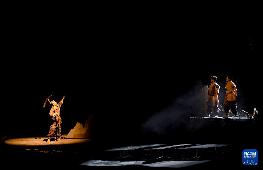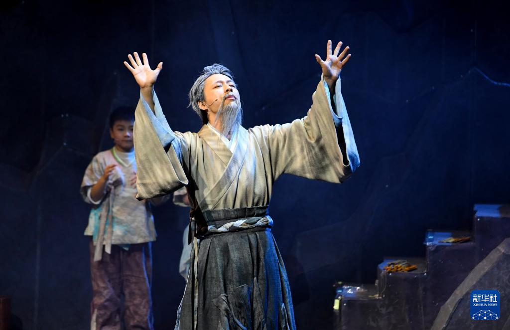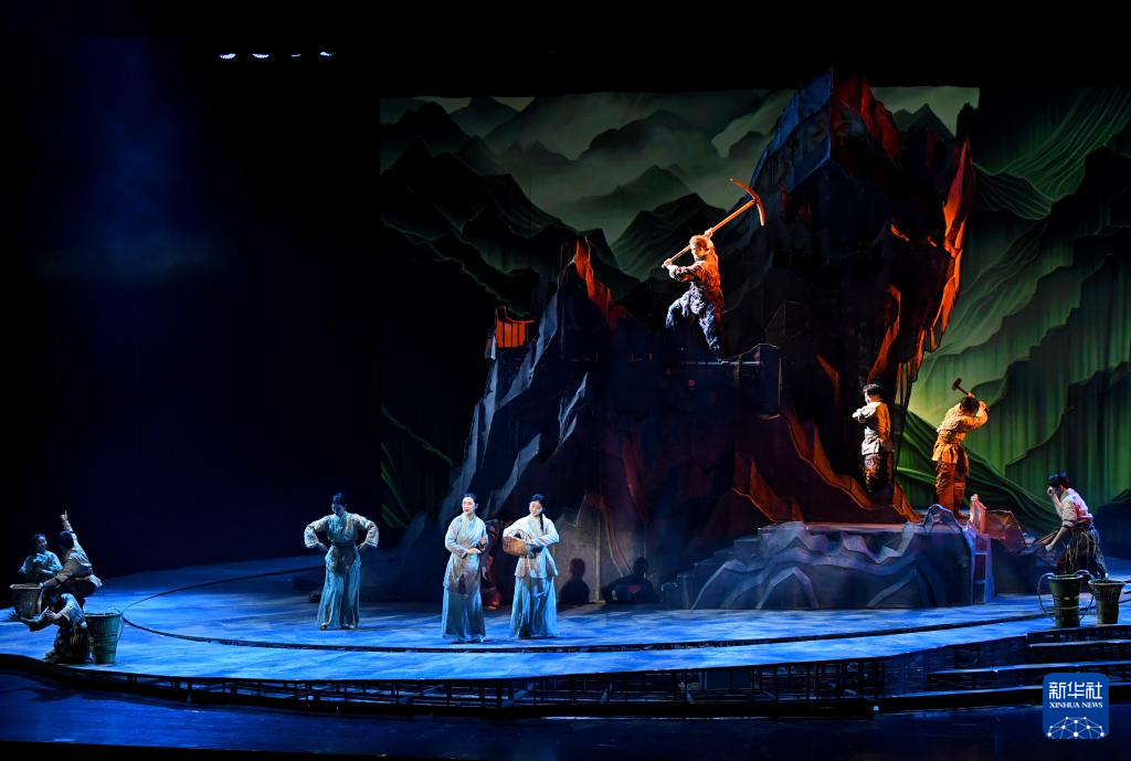 音樂劇《愚公移山》采用說唱表演的舞臺藝術形式,讓寓言故事人物與現代人物跨越時空對話,深入挖掘愚公移山精神內涵和時代價值。