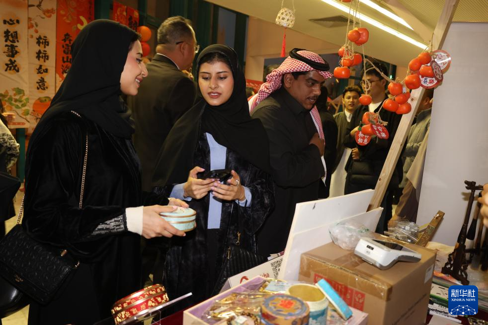 1月10日,在沙特阿拉伯首都利雅得文化宮舉行的“新春大集”活動上,人們選購商品。