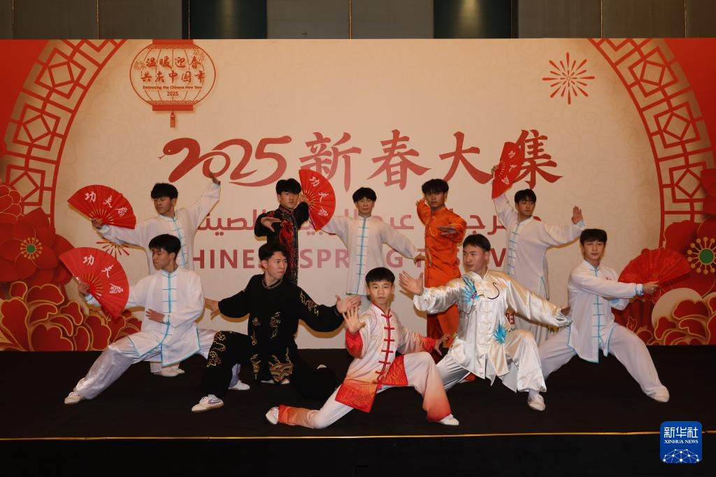 1月10日,在沙特阿拉伯首都利雅得文化宮舉行的“新春大集”活動上,演員表演中國武術。