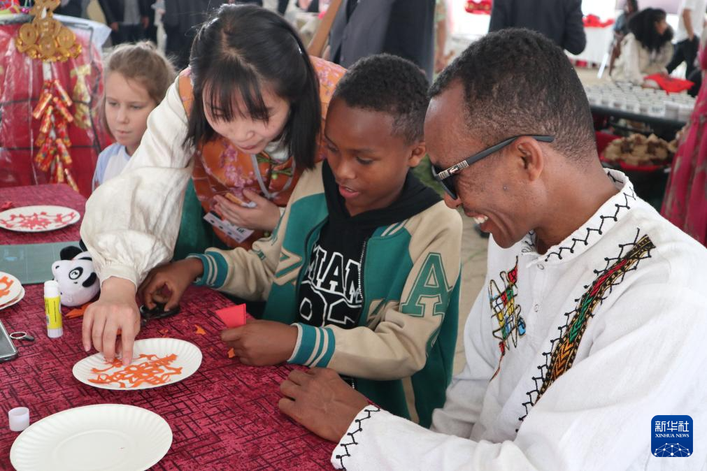 1月12日,在埃塞俄比亞首都亞的斯亞貝巴友誼廣場,當地市民在“慶祝中埃塞建交55周年暨歡樂春節活動”現場體驗中國剪紙文化。