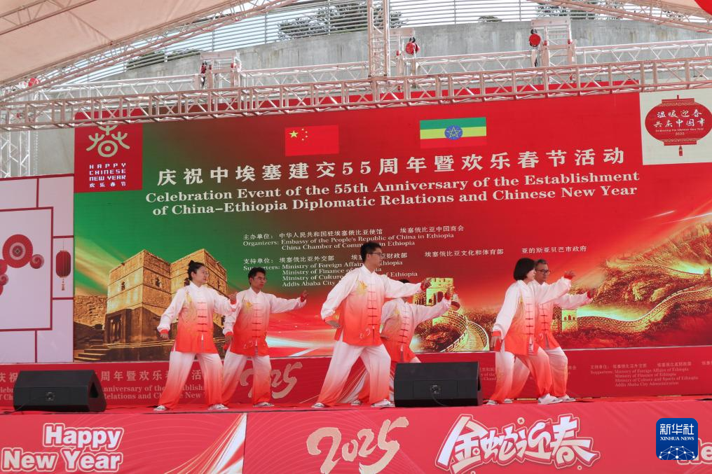1月12日,在埃塞俄比亞首都亞的斯亞貝巴友誼廣場,人們在“慶祝中埃塞建交55周年暨歡樂春節活動”現場表演太極拳。