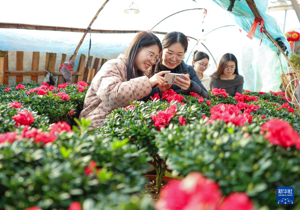 1月13日,在山東省榮成市石島管理區港灣街道車腳河村花卉大棚,市民在選購花卉。