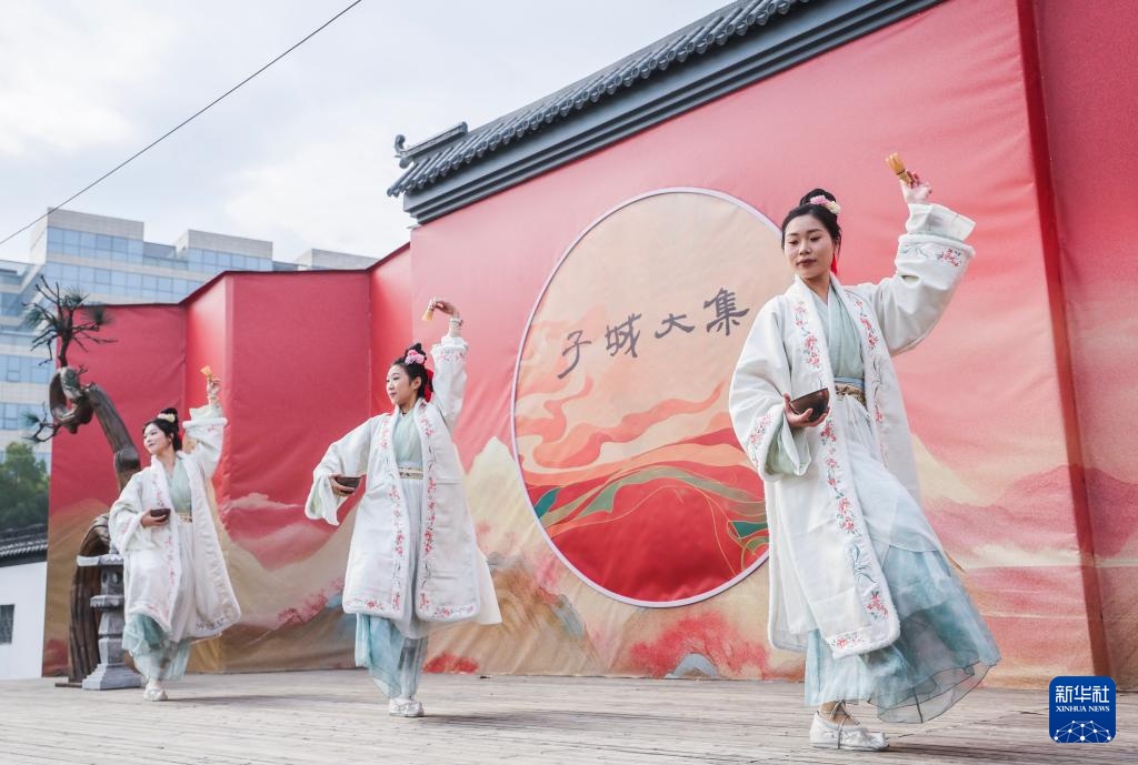 1月14日,浙江省嘉興市南湖區子城遺址公園上演“宋韻流芳·嘉興記憶”傳統民俗演出。