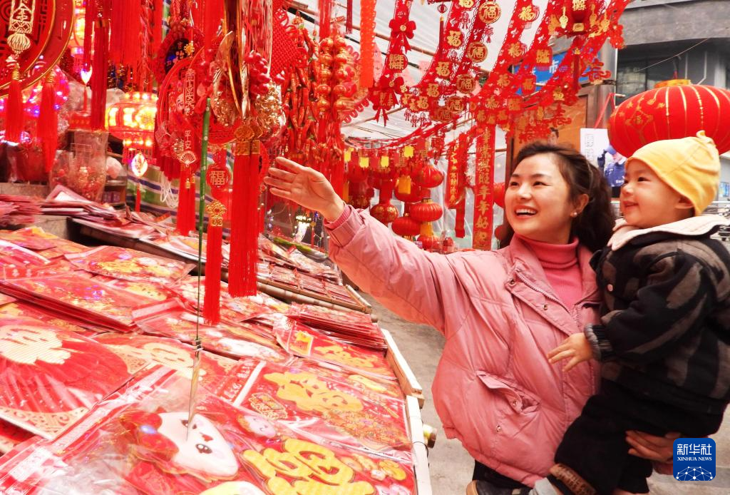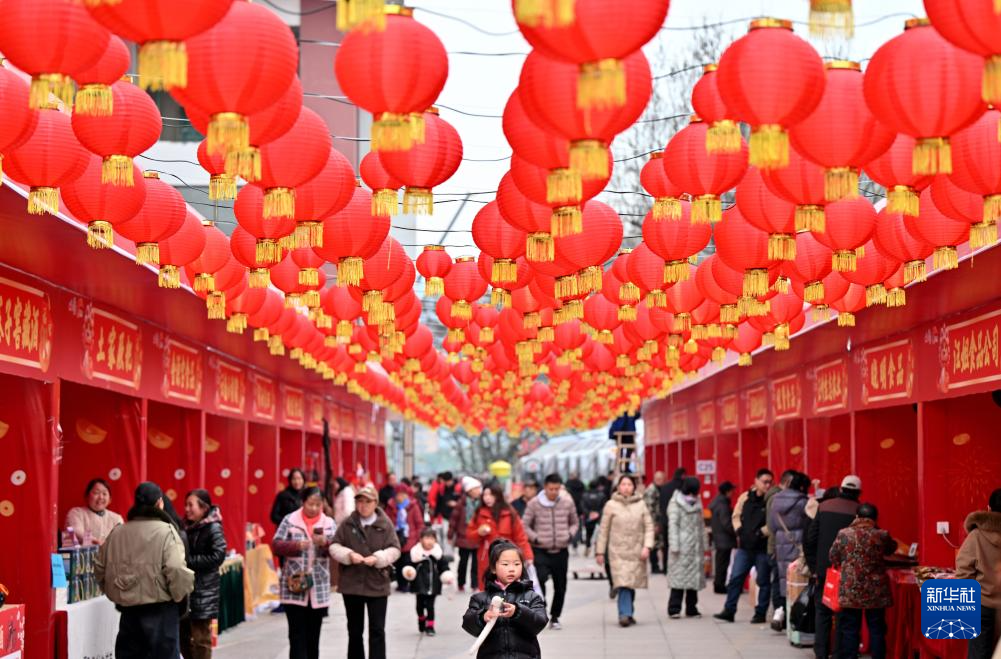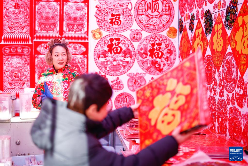 春節臨近,大街小巷張燈結彩,人們逛集市、購年貨,參加各種迎新年活動。