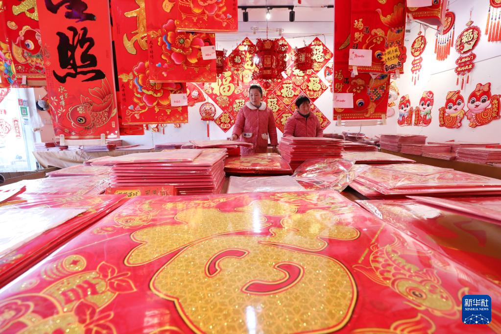 1月13日,顧客在河南省焦作市溫縣趙堡鎮年畫市場選購新年飾品。