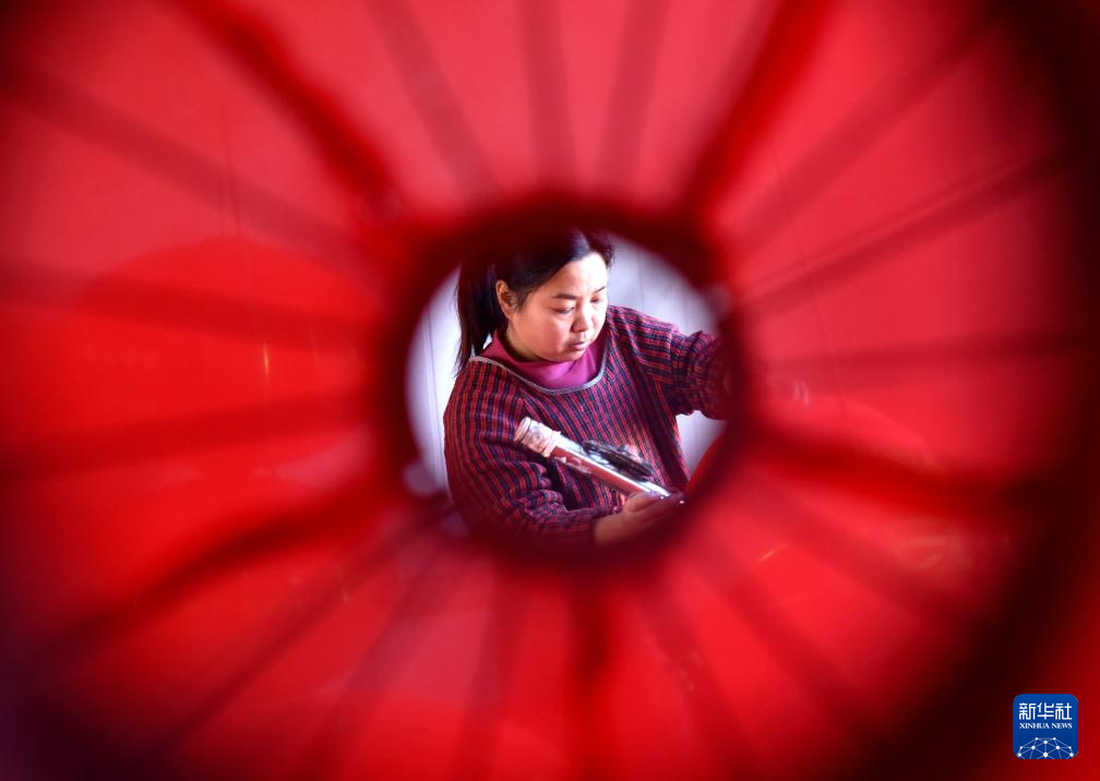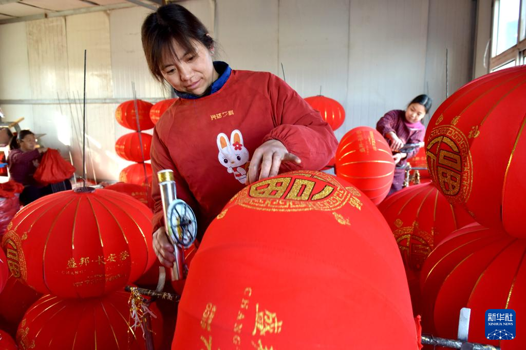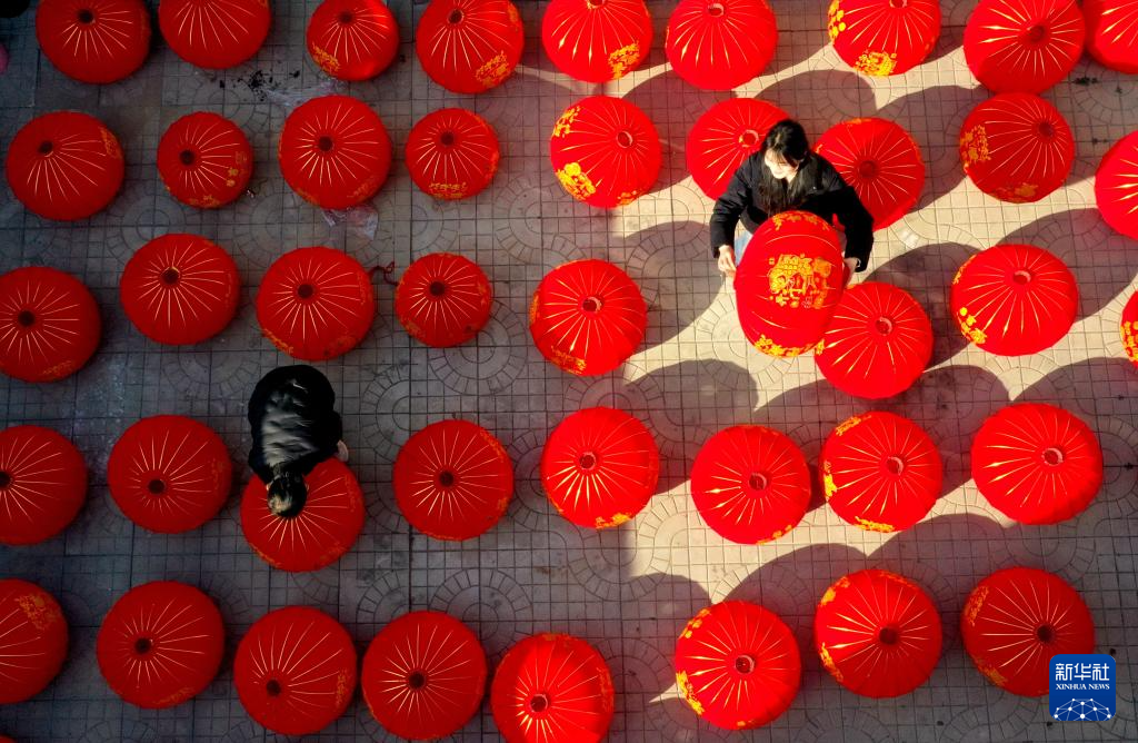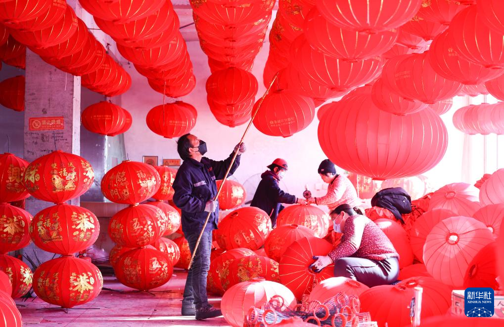 春節臨近,河北省多地燈籠制作工坊趕制大紅燈籠,供應節日市場。