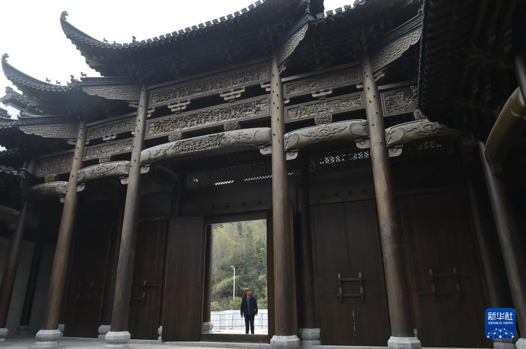 1月8日拍攝的安徽省黃山市徽州區一處徽派建筑的木制門樓。