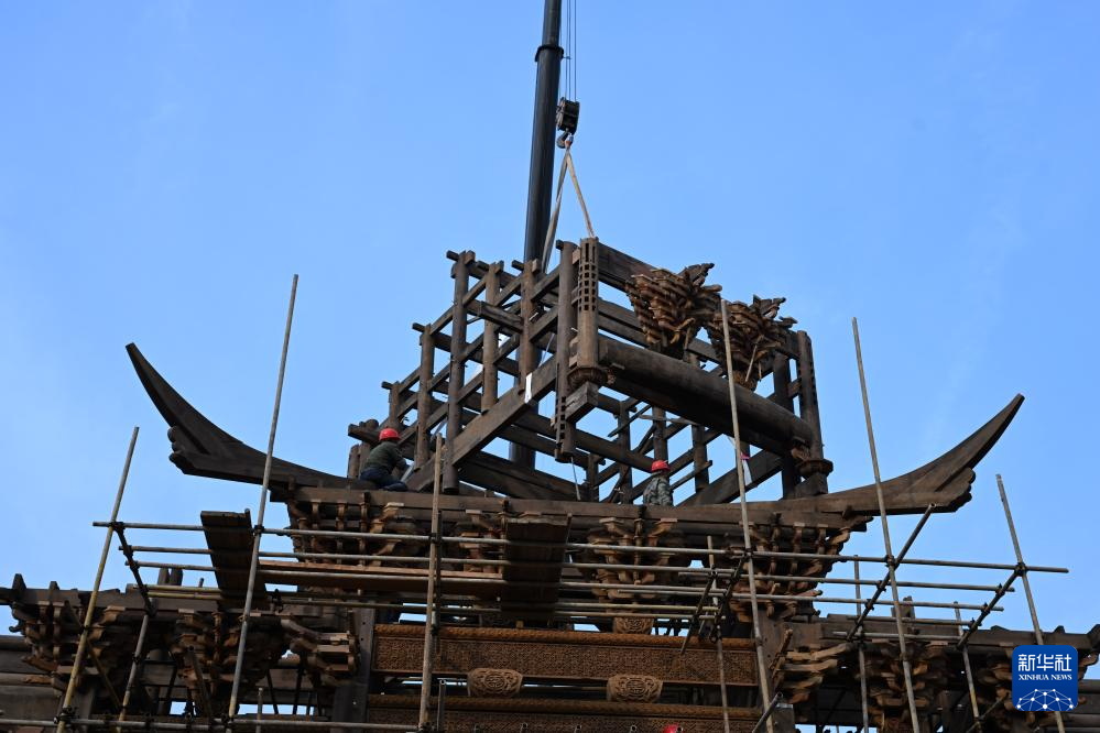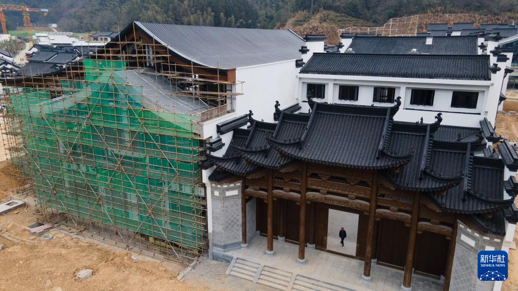 1月8日拍攝的安徽省黃山市休寧縣一處傳統徽派古民居復建工地現場。