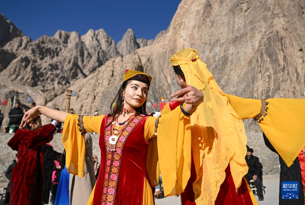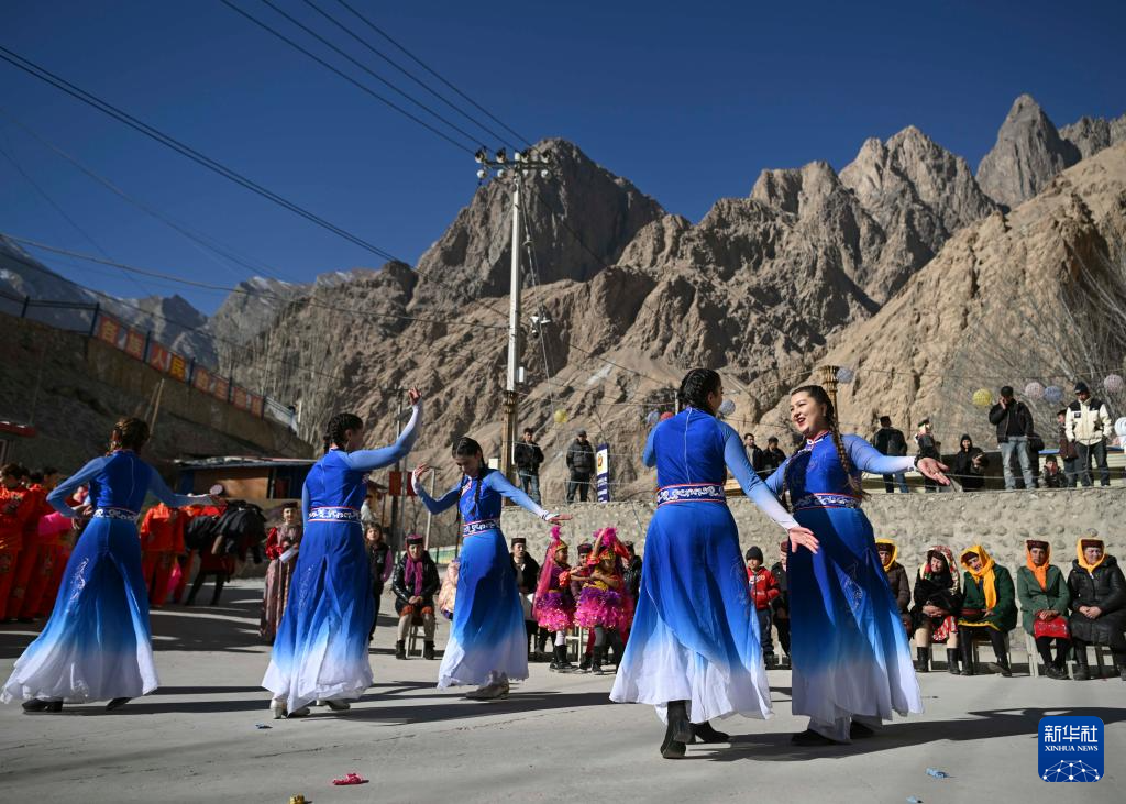大同鄉阿克托尕蘭干村村民跳起贊美愛情與家鄉的舞蹈《古麗巴爾格》(1月7日攝)。