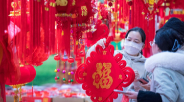 1月16日,市民在廣州新春燈會現場買花燈。