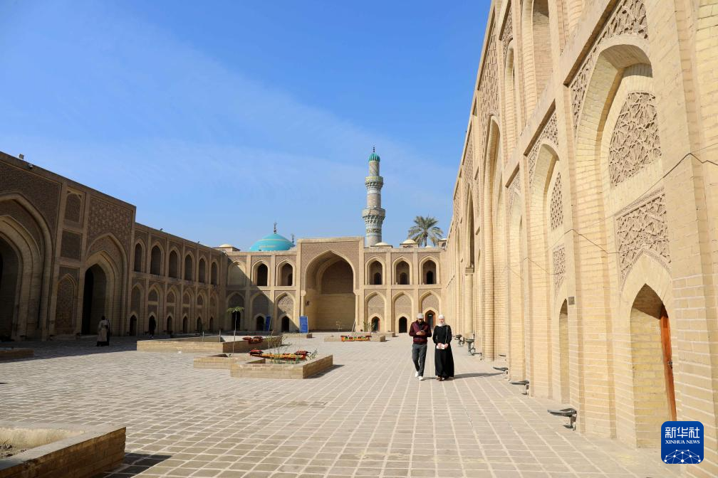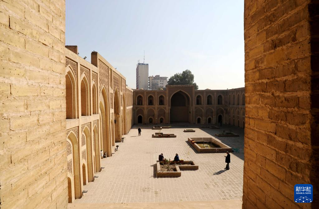 1月15日,在伊拉克巴格達,人們走在穆斯坦西里亞書院庭院內。