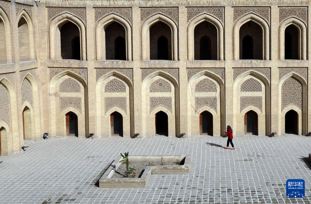 這是1月15日在伊拉克巴格達拍攝的穆斯坦西里亞書院庭院。