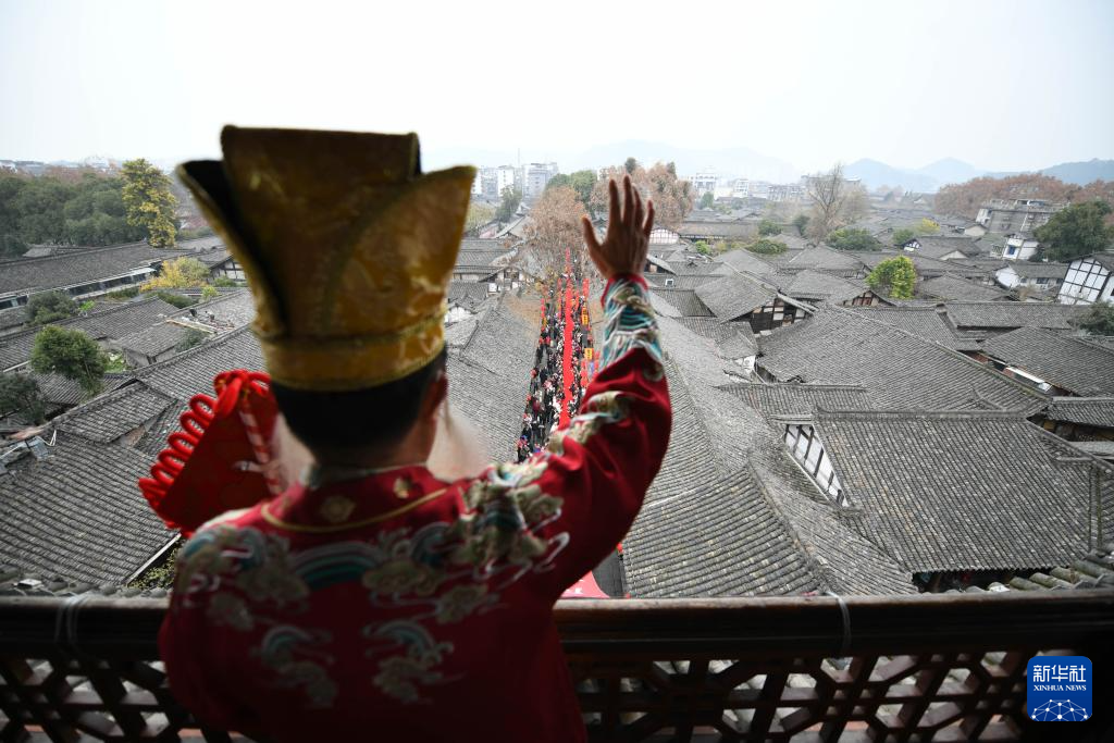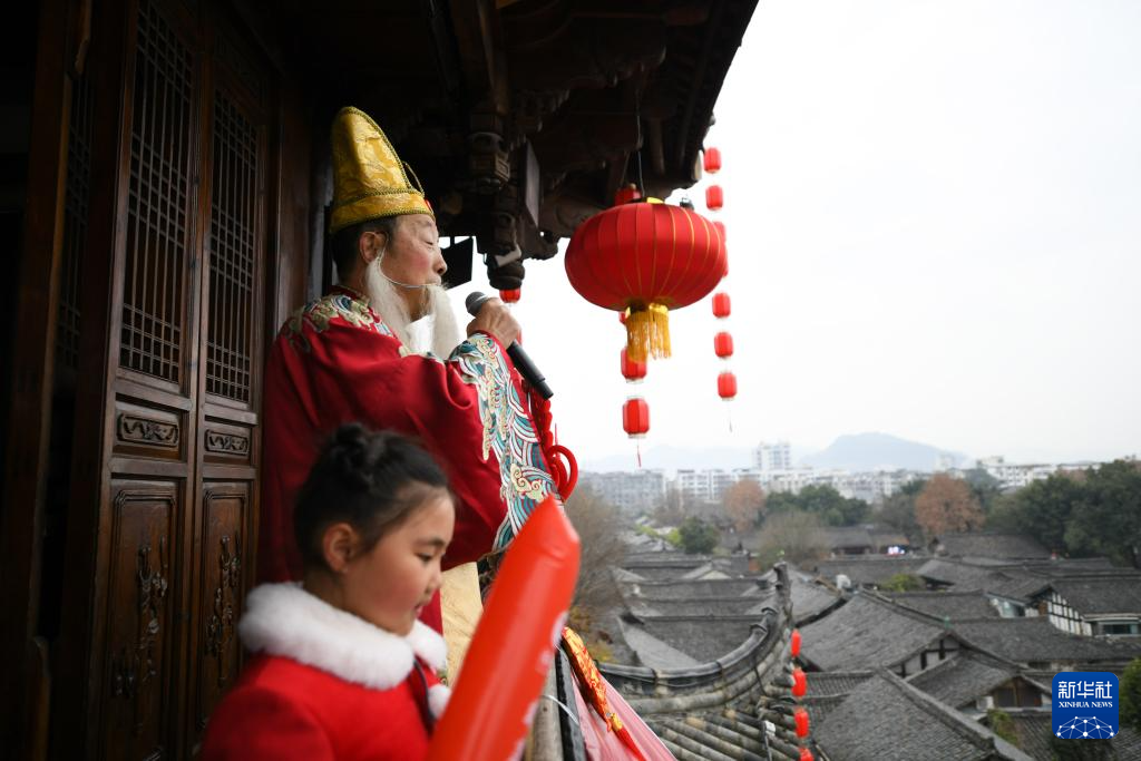 1月7日,閬中古城啟動春節文化系列活動,張忠和在閬中古城中天樓上向市民游客送祝福。