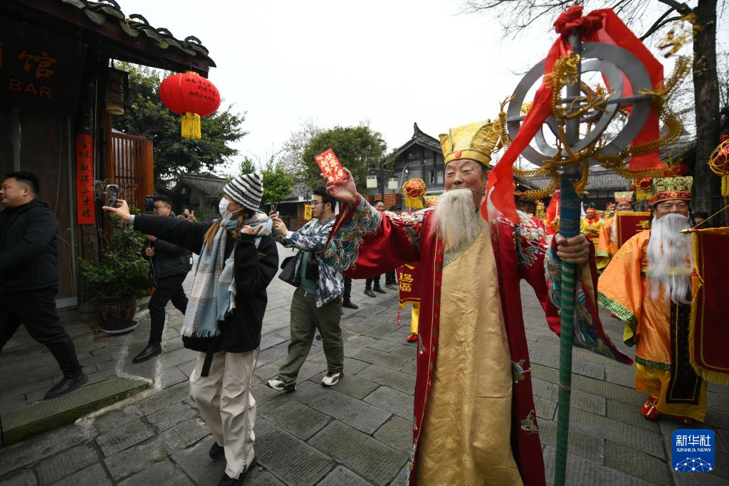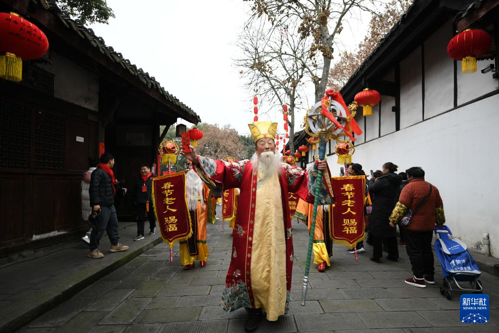 1月7日,閬中古城啟動春節文化系列活動,張忠和手持紅包跟隨音樂舞動,為游客送上祝福。