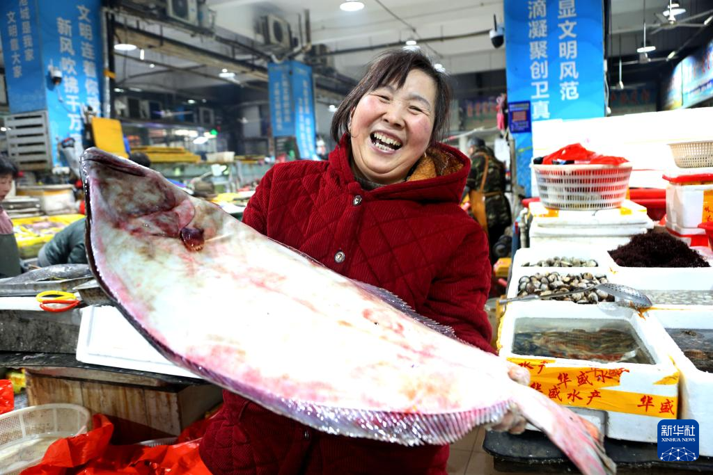1月19日,市民在江蘇省連云港市連云區一農貿市場選購年貨。