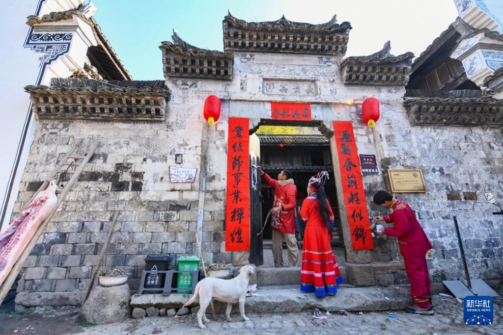 1月19日,在浙江省金華市武義縣大溪口鄉山下鮑村,村民在貼對聯。