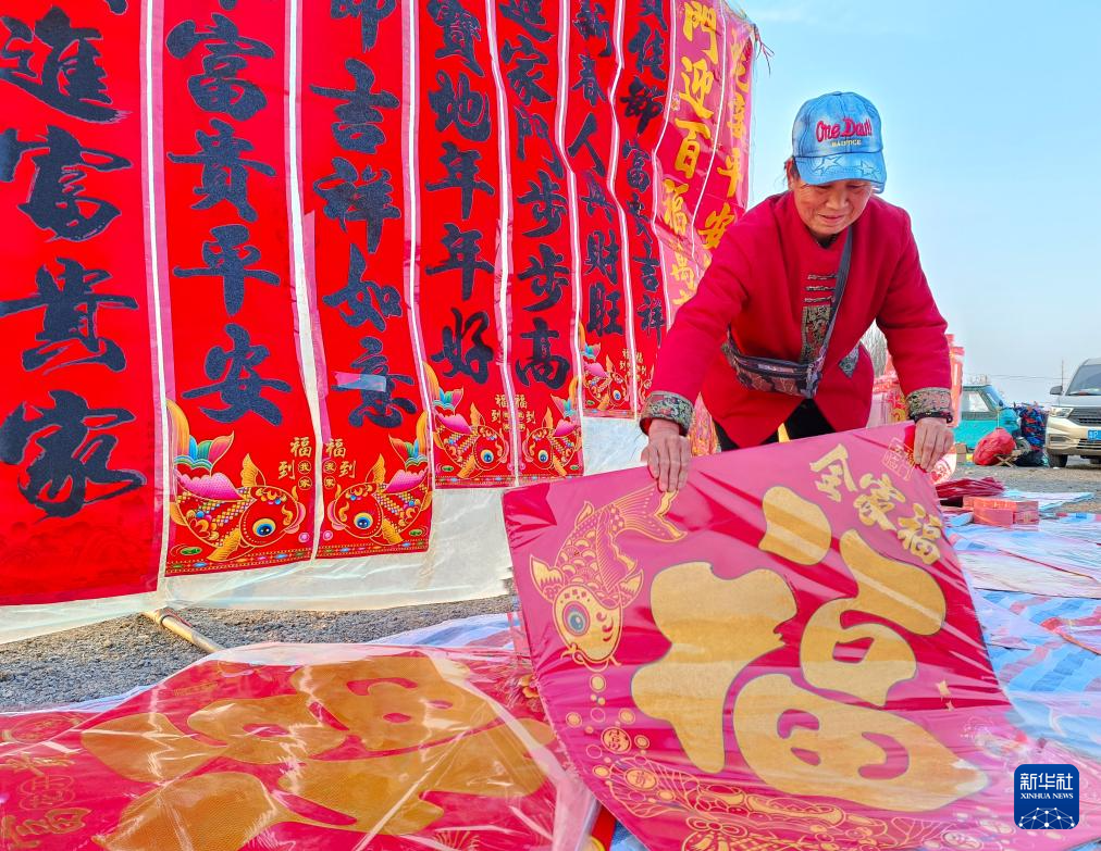 1月19日,人們在江蘇省連云港市贛榆區墩尚鎮鄉村大集選購春節飾品。