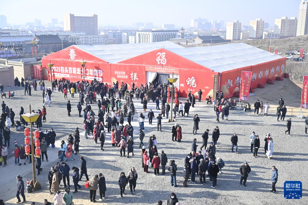 1月19日,人們前往2025包頭首屆走西口年貨節購置年貨。