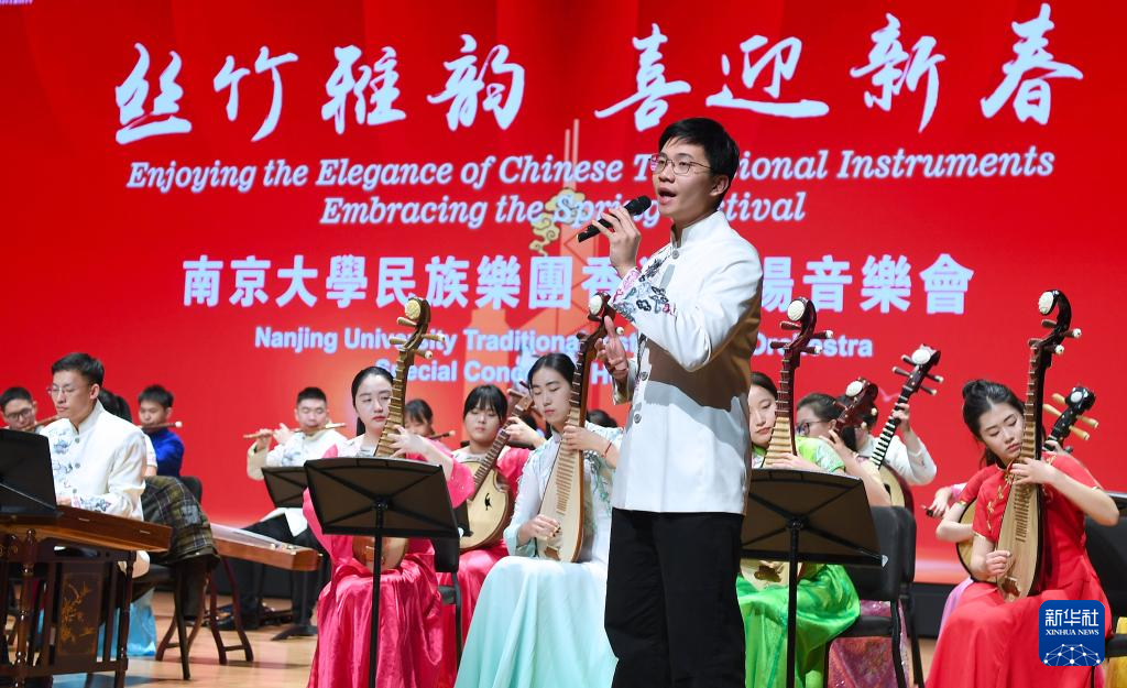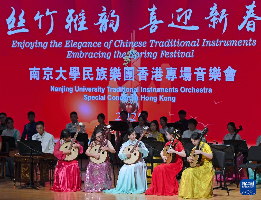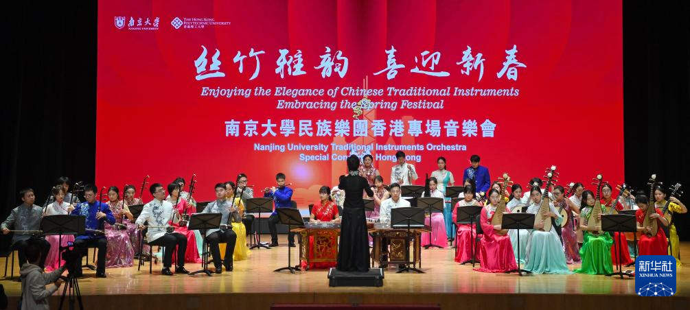 當日,南京大學民族樂團在香港理工大學舉辦“絲竹雅韻 喜迎新春”音樂會。南京大學香港校友代表、香港理工大學師生、香港中學生代表等約1000人出席音樂會。
