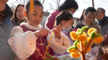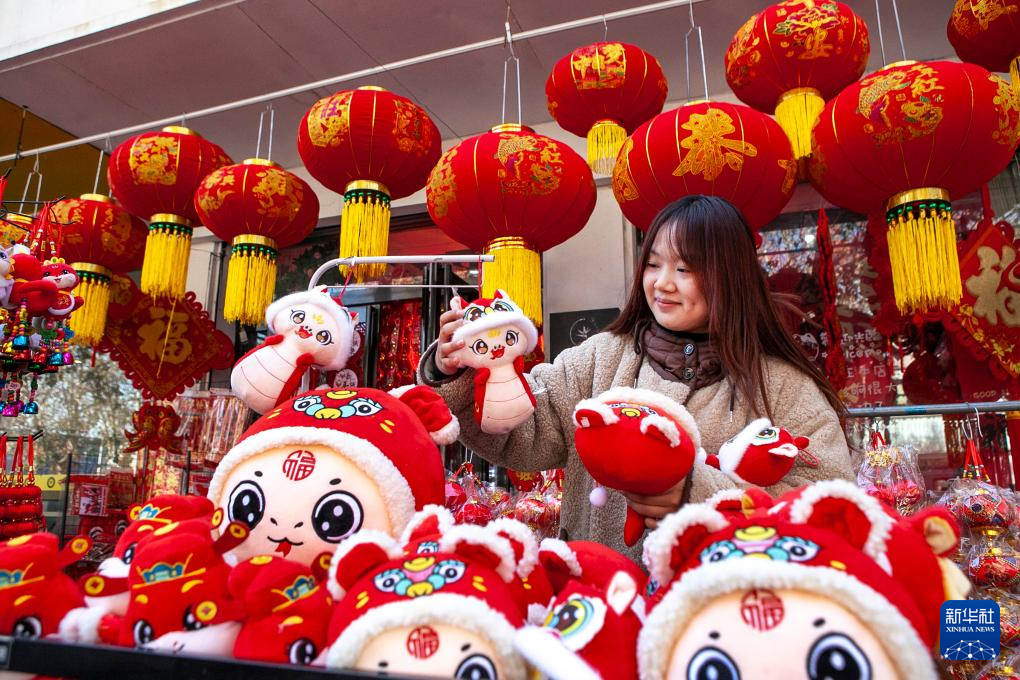 1月19日,在河南省焦作市博愛縣柏山鎮義溝村,村民在選購新年飾品。