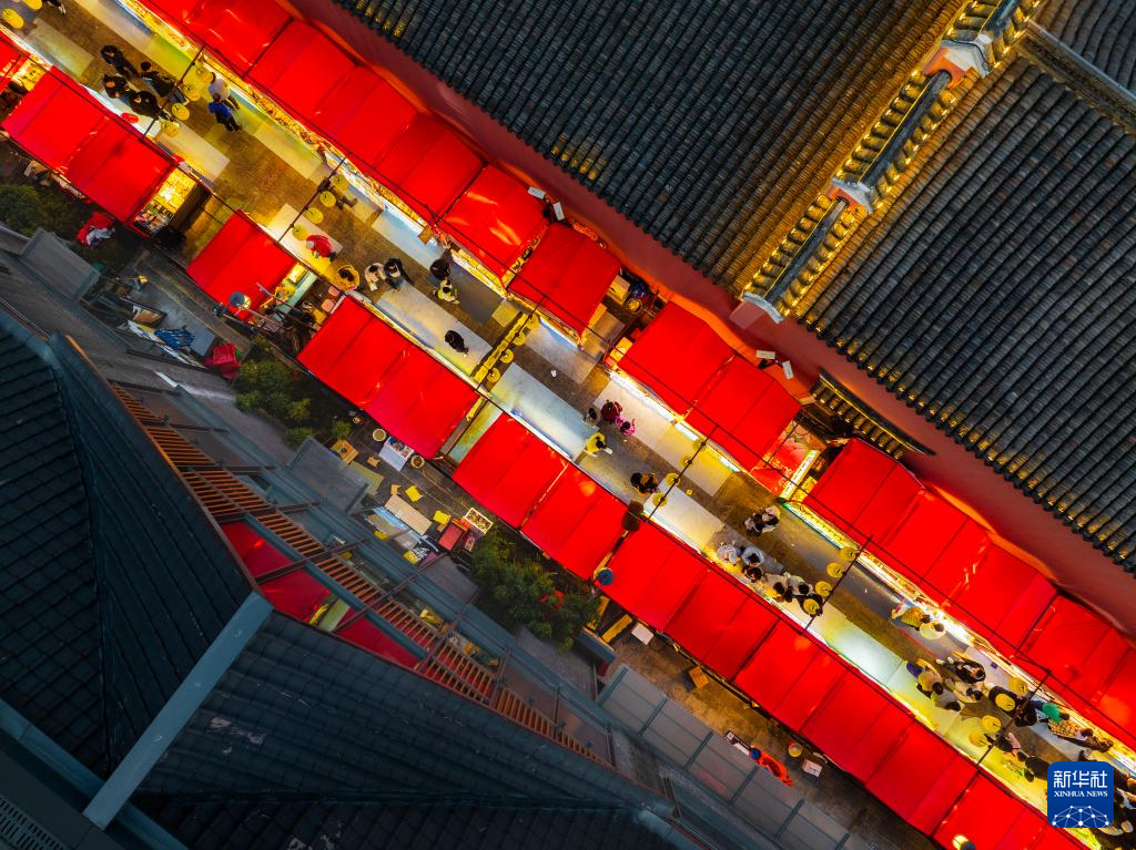 1月18日拍攝的浙江省寧波市城隍廟夜市(無人機照片)。