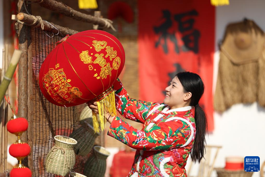 1月19日,工人在浙江省湖州市德清縣乾元鎮談家弄整理燈籠。