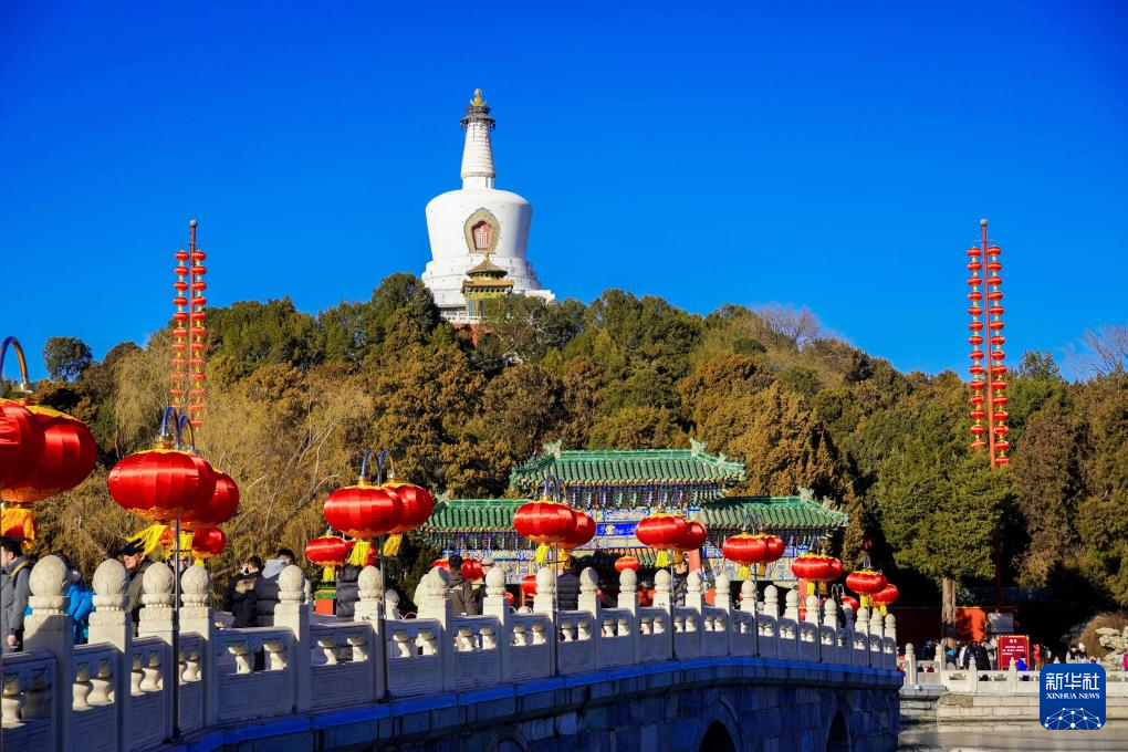 1月19日,河南省開封市龍亭湖風景區工人在懸掛紅燈籠。