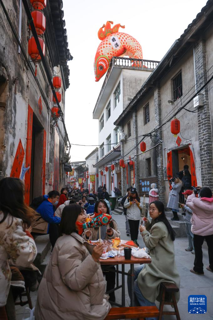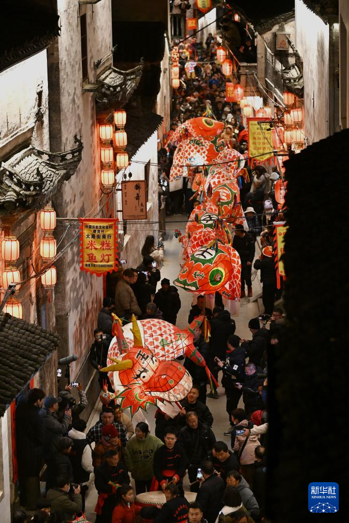 臨近春節,安徽省黃山市歙縣瞻淇村舉行了數場魚燈巡游活動,眾多游客來到這里,感受這座千年古村的獨特風景。