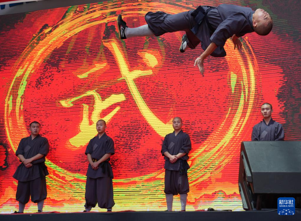 1月19日,少林武僧在肯尼亞首都內羅畢舉行的中國春節廟會活動上表演。