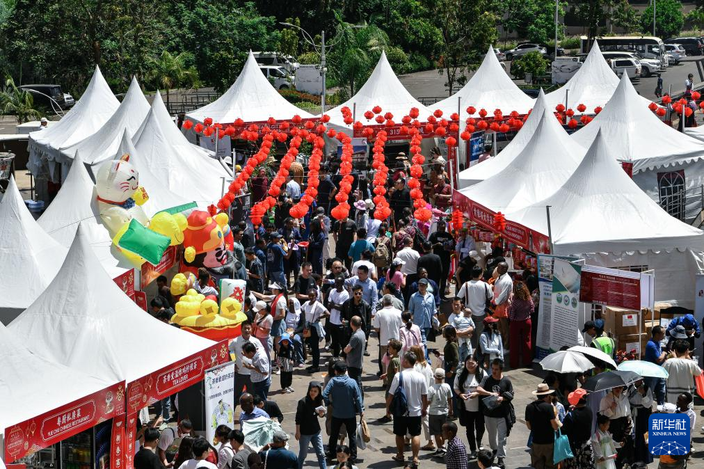 這是1月19日在肯尼亞首都內羅畢拍攝的中國春節廟會活動現場。