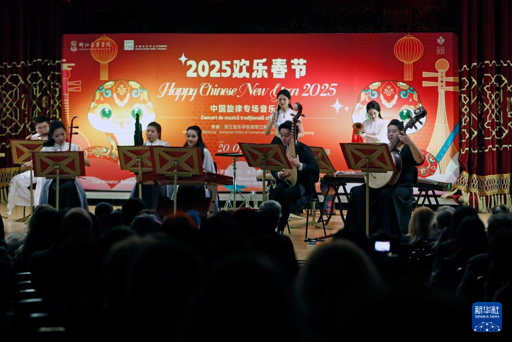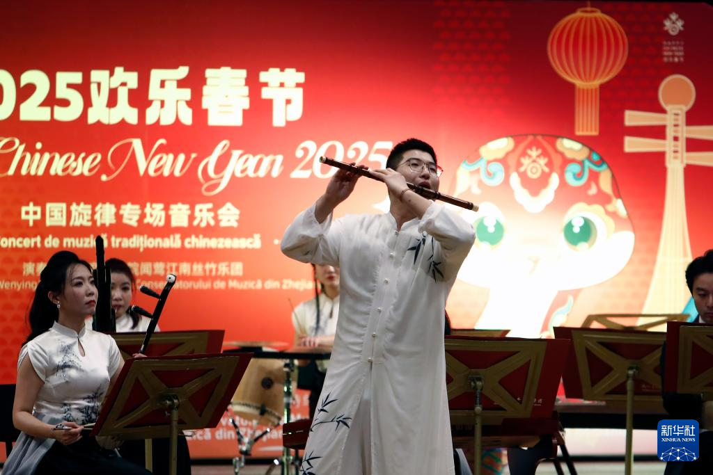 1月20日晚,由中國浙江音樂學院聞鶯江南絲竹樂團帶來的2025“歡樂春節”中國旋律專場音樂會在羅馬尼亞布加勒斯特的雅典娜音樂廳舉行。