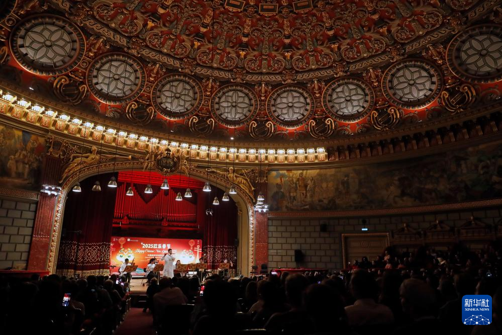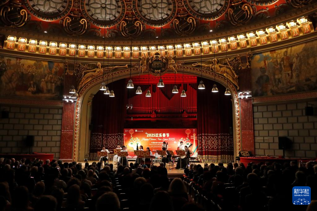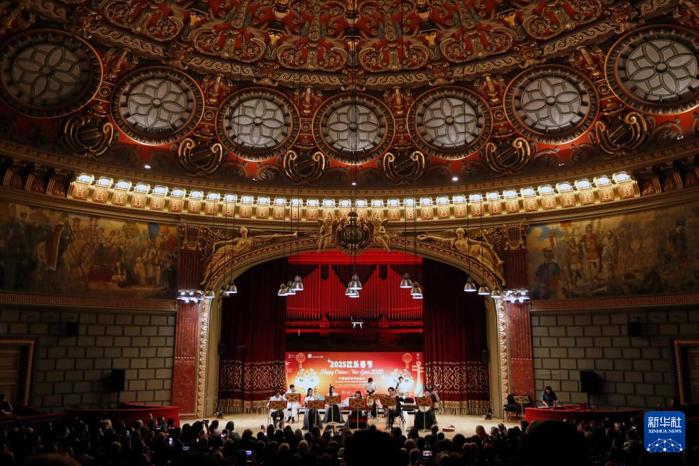 這是1月20日在羅馬尼亞首都布加勒斯特的雅典娜音樂廳拍攝的2025“歡樂春節”中國旋律專場音樂會現場。