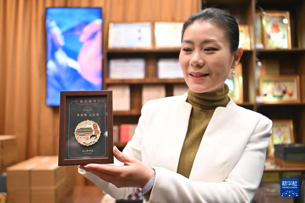 在天津古文化街泥人張世家,泥人張世家副總經理李丹向記者展示一款泥人張新年文創產品(1月20日攝)。