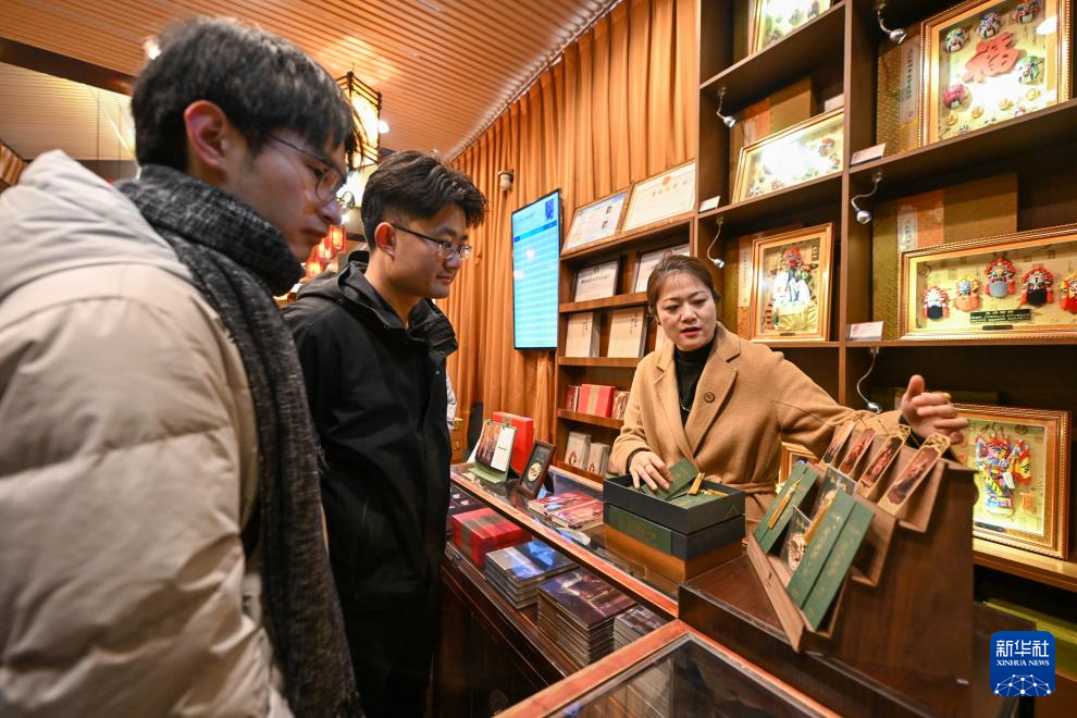 游客在天津古文化街泥人張世家選購文創產品(1月20日攝)。
