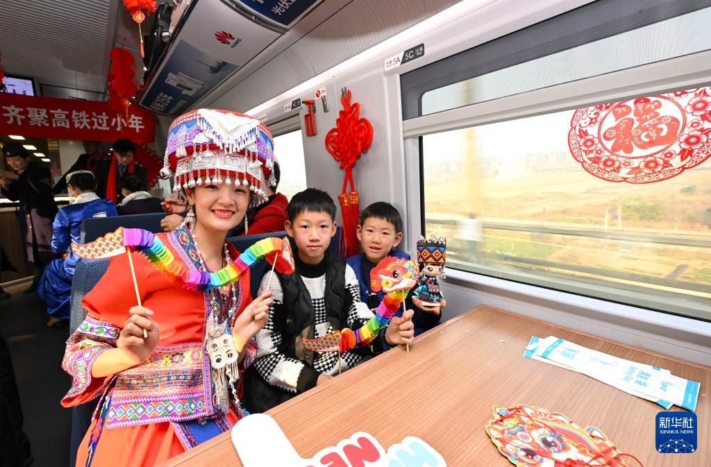 小年來臨之際,上??瓦\段高鐵四車隊在由上海虹橋站發往廈門北站的G1653次列車上舉辦“中國年,民族情,齊聚高鐵過小年”主題活動。車隊職工為旅客帶來民族歌舞、寫福字等活動,讓旅客在旅途中感受濃厚的節日氛圍。
