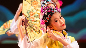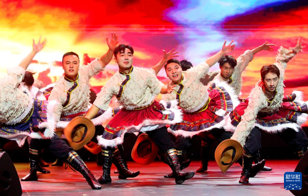 1月20日,在白俄羅斯首都明斯克,來自中國的學生在中白學生春節聯歡晚會上表演舞蹈。