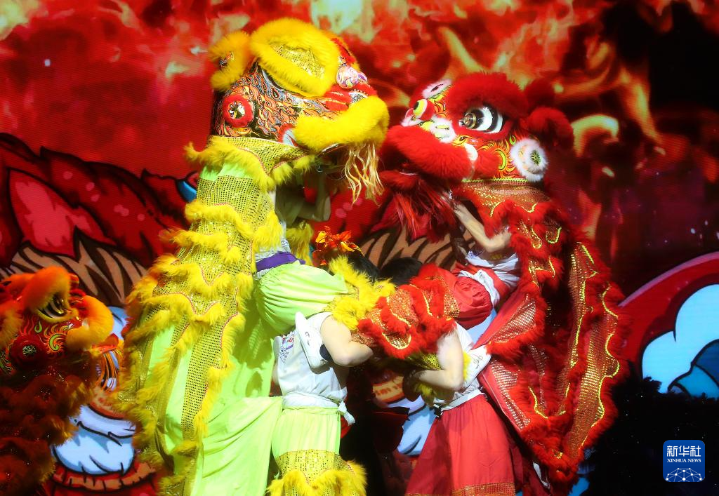 1月20日,在白俄羅斯首都明斯克,來自中國的學生在中白學生春節聯歡晚會上表演舞獅。