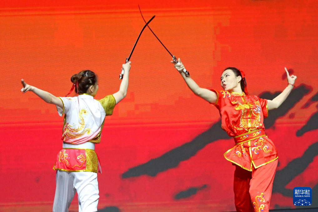 1月20日,在白俄羅斯首都明斯克,來自中國的學生在中白學生春節聯歡晚會上表演武術。
