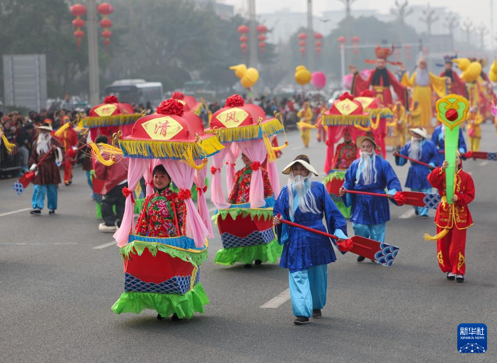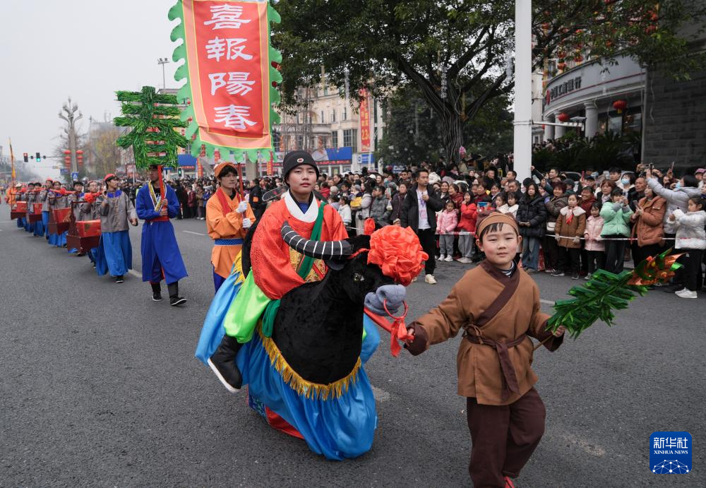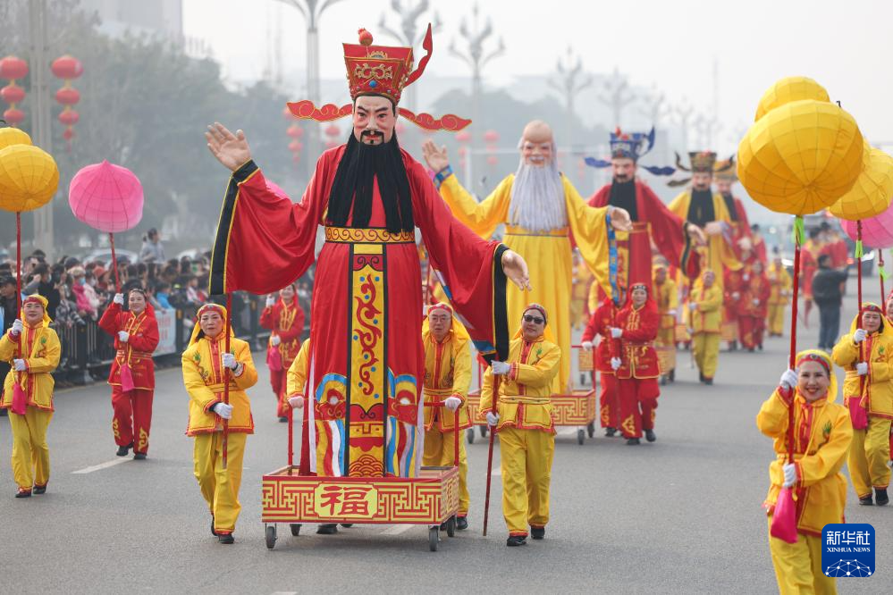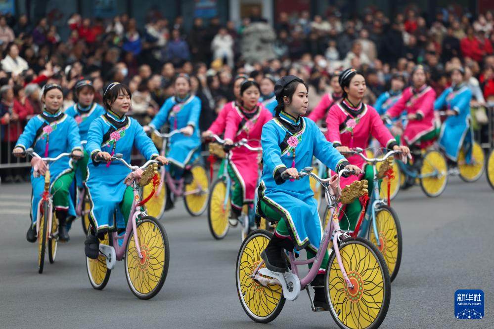 1月22日在綿竹年畫節開幕式上拍攝的巡游隊伍。