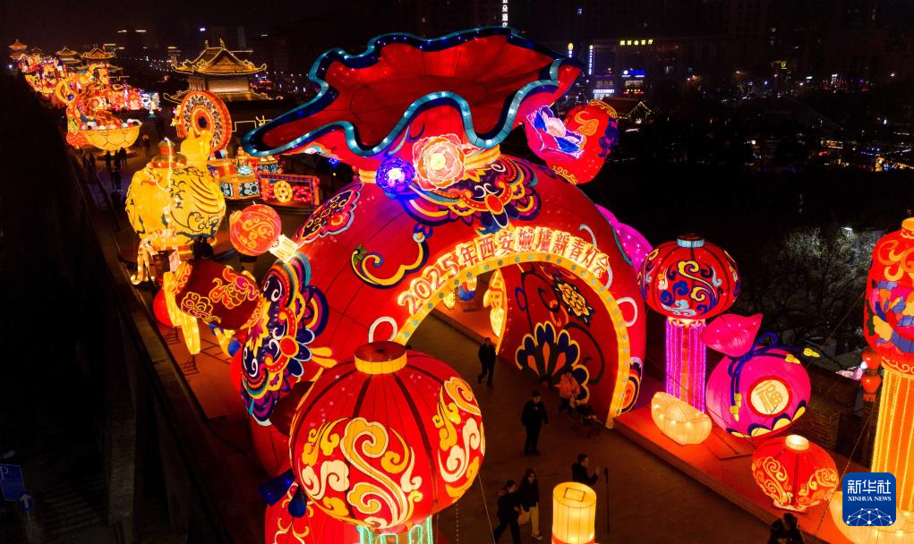 當晚,2025乙巳蛇年“長安燈會”正式啟幕,萬盞花燈在西安城墻、大唐芙蓉園、大明宮國家遺址公園同步點亮。盛唐特色主題燈組、煙火氣十足的國潮集市、光影交織的新春系列演出,為游客帶來一場璀璨的新春燈火盛宴。本屆燈會以“乙巳中國年,燈映長安春”為主題,持續至3月16日。
